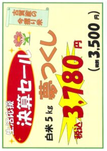 生活応援 決算セール「お米特売」実施します!!